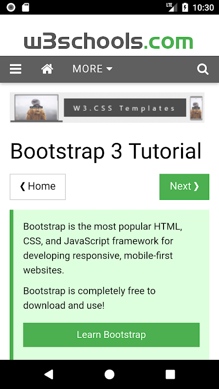 ->This w3schools online tutorials app comes with a complete comprehensive and responsive layout