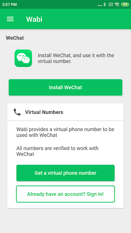 • Wabi provides clean, dedicated, non-recycled phone numbers, guaranteed to work with WeChat!