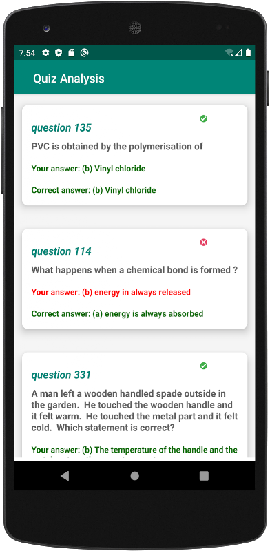 Lastly, there is in-app statistics for the inter science exam quiz attempt. The app will help the student keep track of and review their quiz attempts, their passing marks, failing marks and other useful info to make studying easier and fun.
