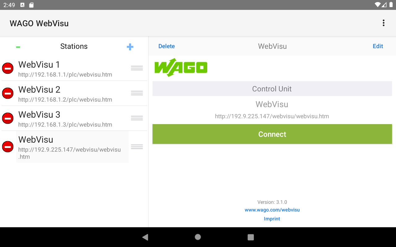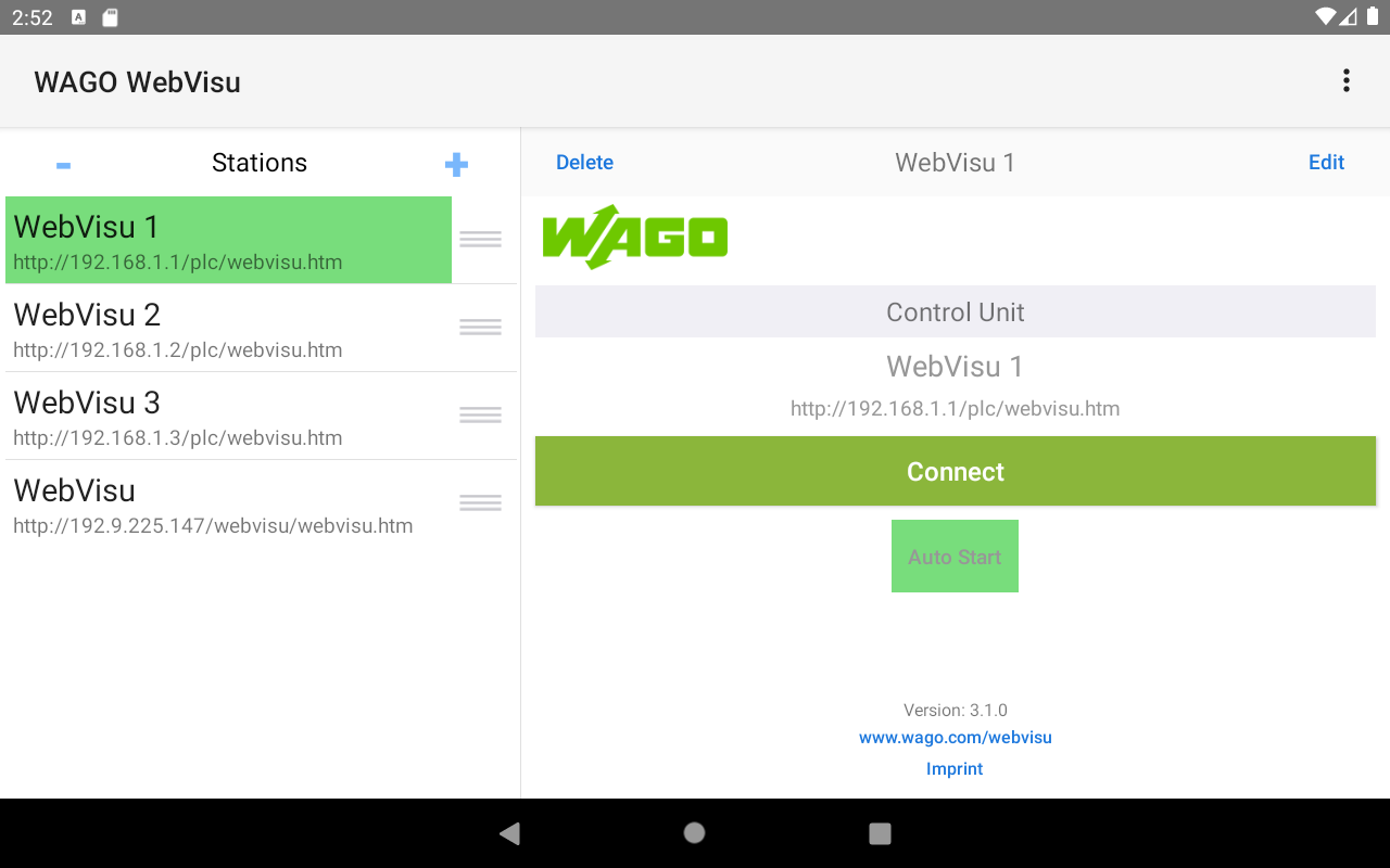 The WAGO WebVisu App operates and monitors automation processes. It supports a wide range of applications in industrial and building automation. The app works exclusively with WAGO controllers from a defined firmware version.