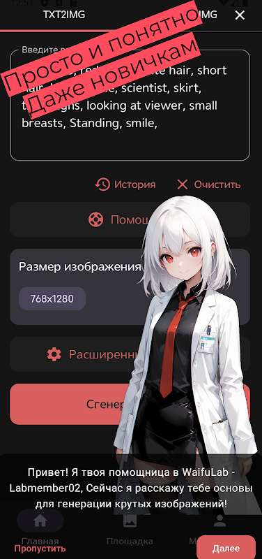 But you’re not alone on this creative journey — meet your personal AI assistant, a charming virtual waifu who’s always ready to help with tips, ideas, and support as you create.