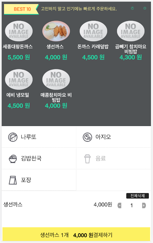 안드로이드 장비에서 실행되는 키오스크 앱