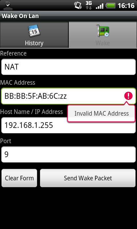 A simple Wake On Lan application. Stores history of sent packets, to save you remembering MAC addresses.