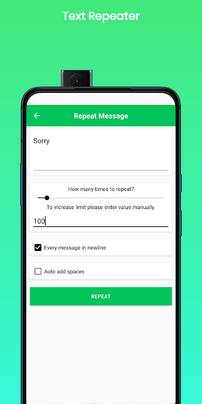And with the Text Repeater ,you can repeat any text and directly share with your friends with juat one click.
