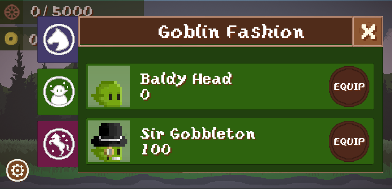 Dress up your goblin in adorable outfits and give your horse the matching hat for a perfect partner look. You can buy different horse companions - even a unicorn! 🦄
