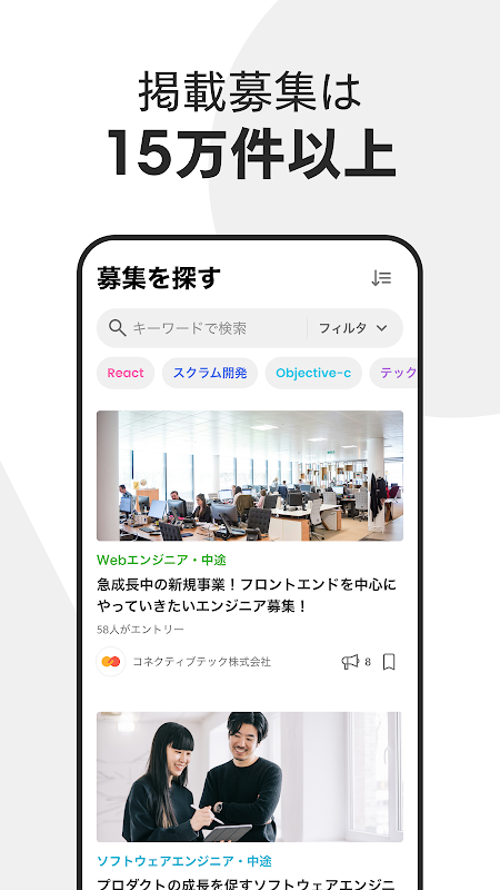 Among the more than 30,000 companies listed on Wantedly, there are a variety of companies recruiting for various positions, from [large companies] such as Yahoo and Recruit, to [startup companies] such as CyberAgent and Mercari, as well as other NPOs and local governments.