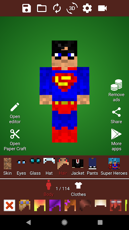 ▶ Preview the created skins in 3D, with the ability to save the screenshot of the 3D model.