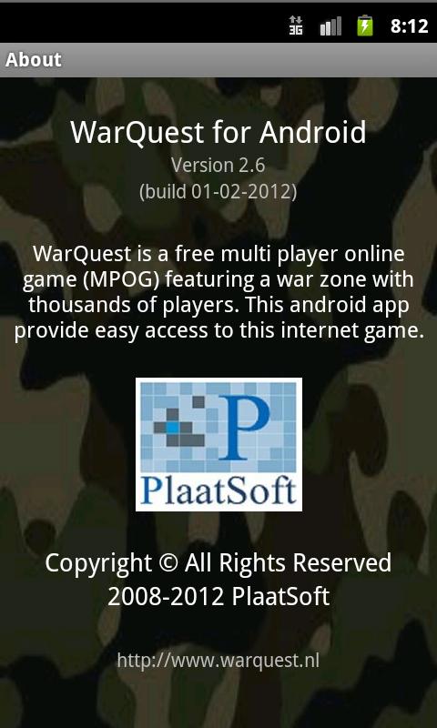 WarQuest for Android is a free multi player online game (MPOG) featuring a war zone with thousands of players. WarQuest takes you to the year 2020. The world is at war. The goal of the game is to defend your country and conquer others. Buy weapon and production units, play missions, fight, make allies and become the best player of your country. Enter the war zone if you dare!