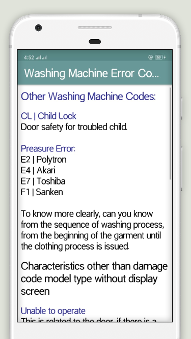 All Washing Machine Error Code is an app that contains information about most common failure of washing machine. Repair of washing machine: error code & how to fix