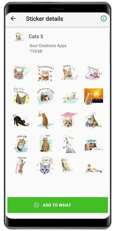Use this WASticker Stickers app and Add new sticker pack of cat memes, cat stickers and funny cat stickers to express your emotions and love cats and say hello with lovely cat stickers.
