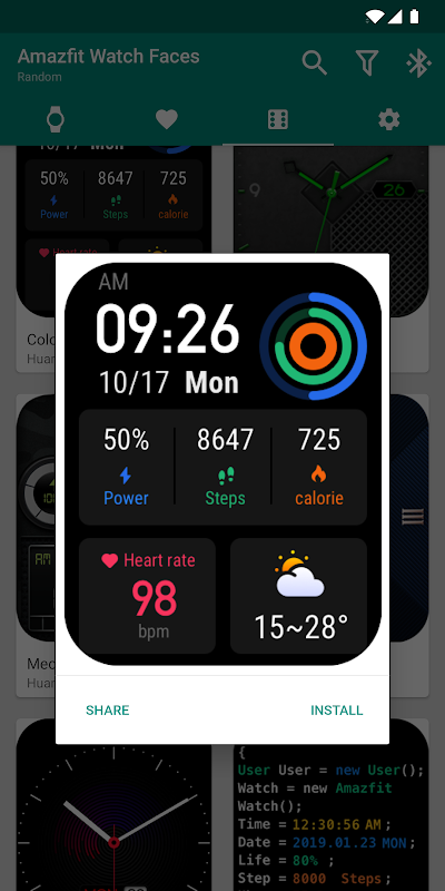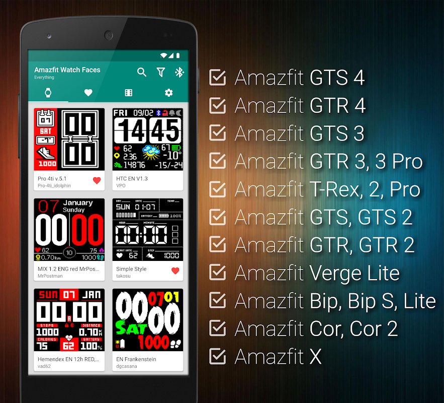 Watch Faces & Amazfit allows you to browse and directly install thousands of community driven watch faces by single press of a button! New watch faces are added every single week!