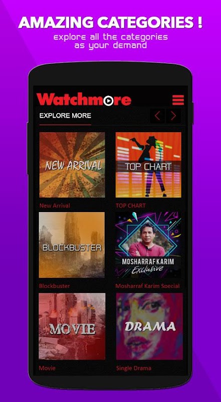 WatchMore is the country’s biggest online portal offering you to enjoy fast live streaming, online TV serial, special episodes as well as country’s largest Bangla movie collections. WatchMore provides simultaneous streaming of videos and video highlights are also available at one stop. So, unwind and keep streaming with just single touch!