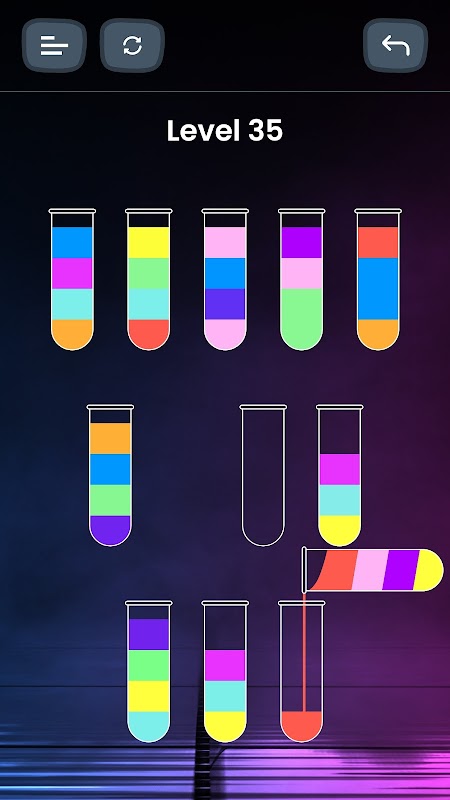 Pour colored water from one tube to another tube to complete the level.