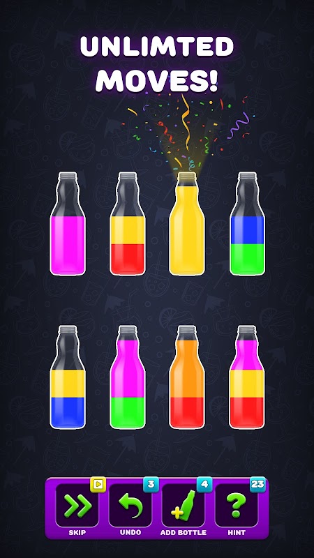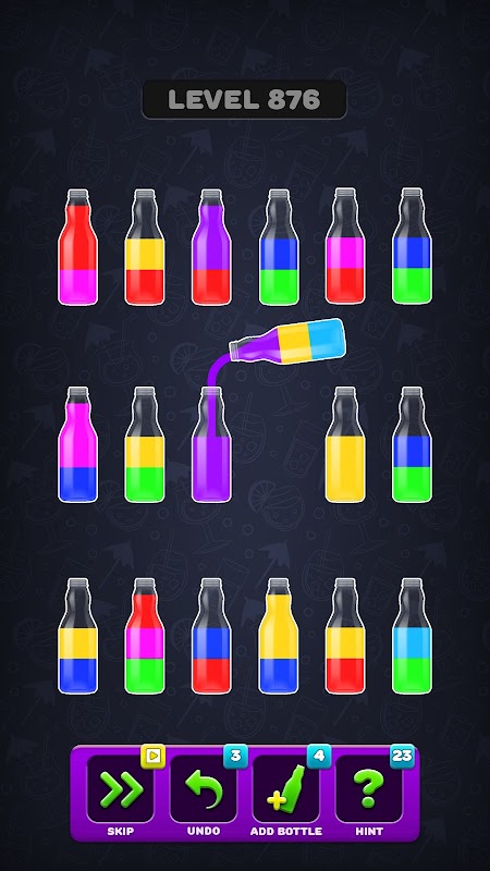 - Sort colored bottles into respective bottles in a water puzzle game.