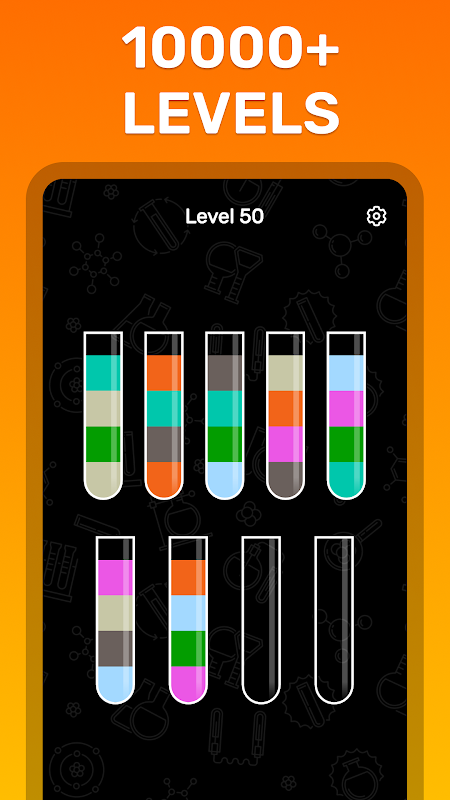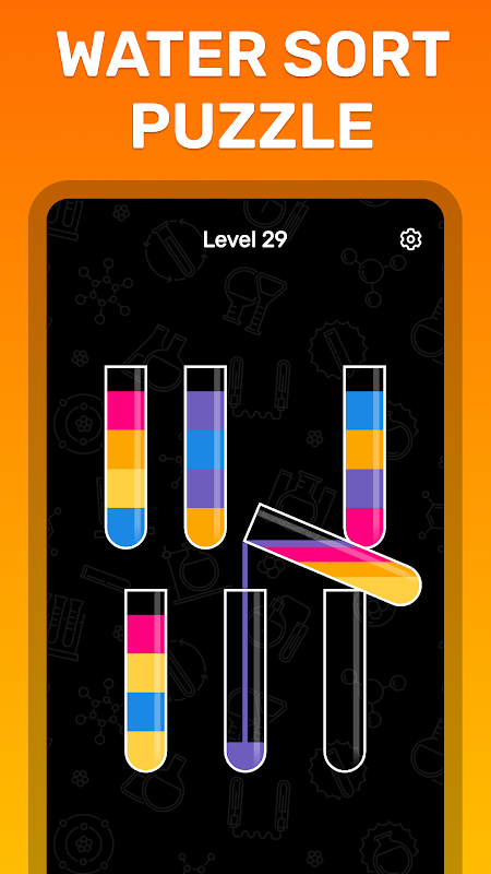 It is easy to play, but difficult to master. Arrange liquids of various colors by pouring water into tubes until each tube is filled with the same color water. You may easily pass the first few levels. But do not take it lightly. The later levels will get harder and harder. You need to strategically organize your moves and pass each level of the water sort puzzle with the fewest moves.