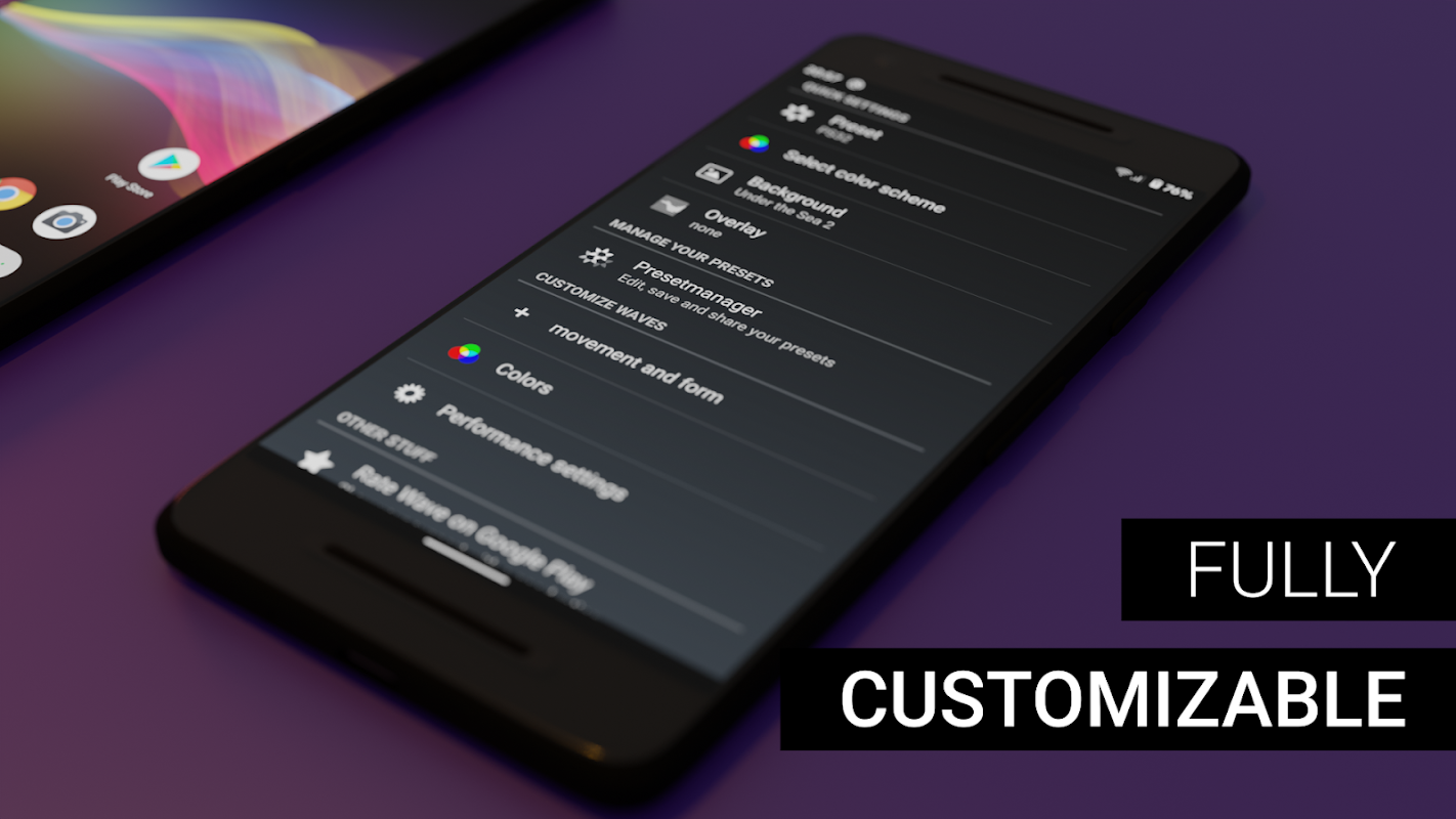Wave is not a simple photo background or video background live wallpaper. It is not limited to a specific resolution (i.e. FullHD or 4K) instead it uses the devices default screen resolution for rendering this in realtime.