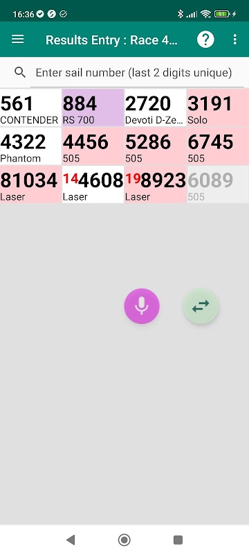 4a) Alternatively the RO can use speech recognition to capture results as competitors finish. Ideally this is used in conjunction with an assistant writing down sail numbers whilst noting the time.