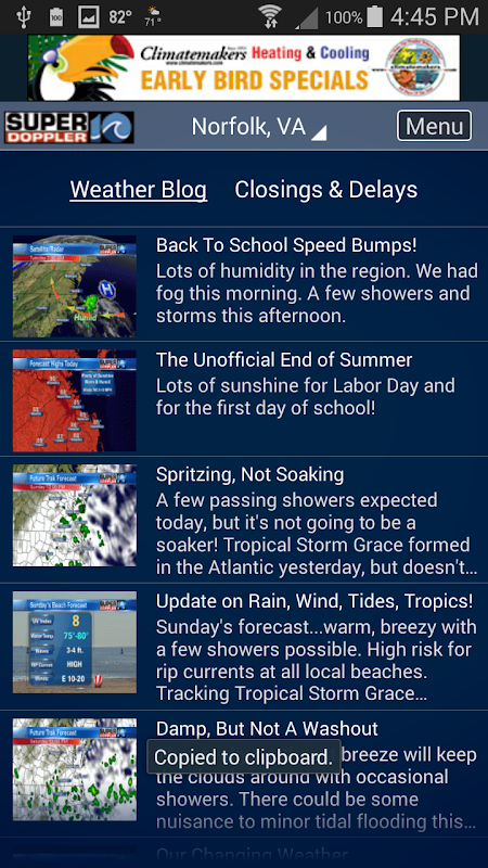 Never let the weather catch you by surprise again. The trusted weather experts at Super Doppler 10 Weather deliver Hampton Roads, Virginia's most accurate hour-by-hour forecast for the next day and for the week ahead. Unlike other weather apps, you'll get a local forecast that is customized for you.