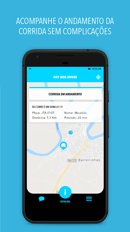 Nosso aplicativo permite que você chame um de nossos veículos e acompanhe o deslocamento do carro no mapa, sendo avisado quando ele estiver na sua porta.