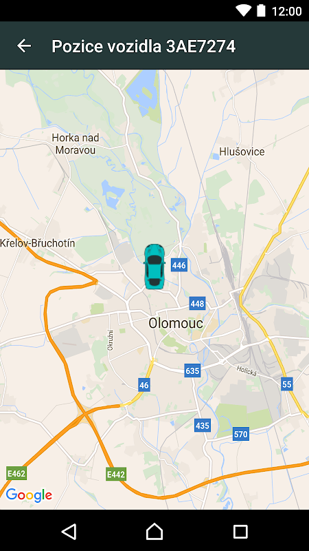 - rychlost a aktuální pozici vozidla včetně možnosti zobrazení na mapě