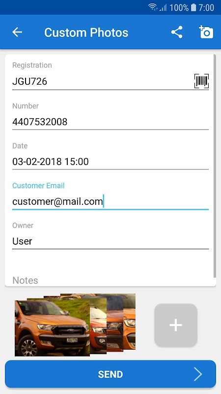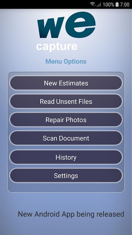 App is used to capture photos, video & commentary of accident damaged vehicles.