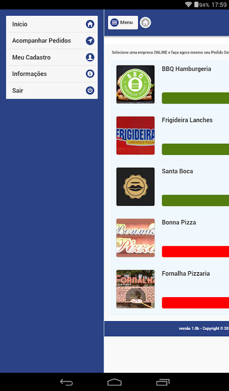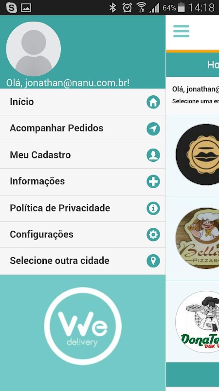 Você pode escolher entre pizzas, lanches, bebidas ou o que você desejar.