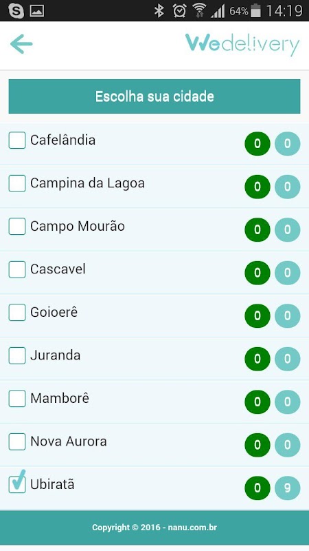 WEDELIVERY - LISTA UBIRATÃ - NANU
