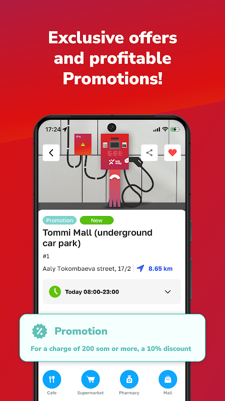 Now, charging your car has become even more pleasant - we have regular promotions that will help you save money. And to keep you up to date with the hottest offers, we provide the details of your charge right in the app. This means you'll always know how much you're saving. Convenience and value are what make our app the best choice for charging your car.