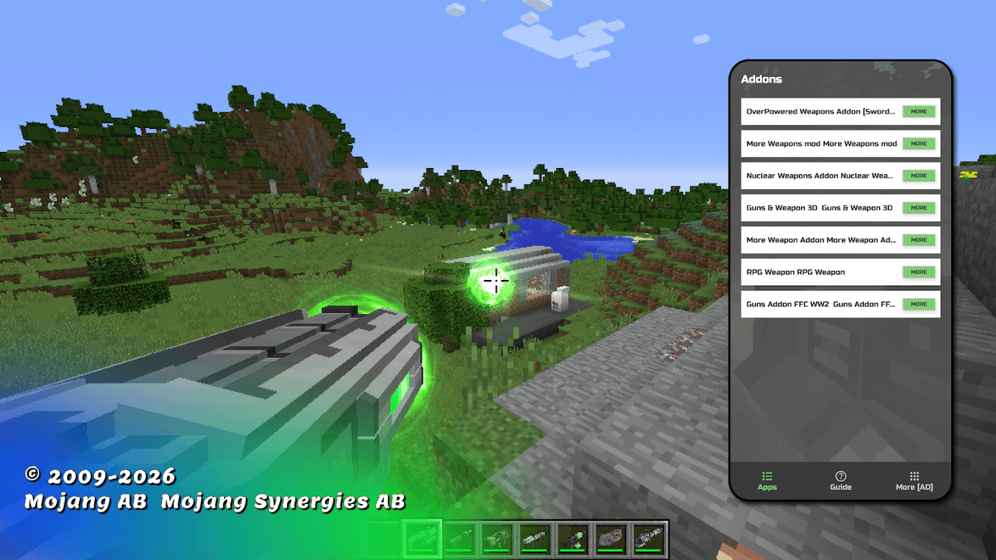 Large inventory of weapon mod for minecraft! Easy installation weapons for mcpe!