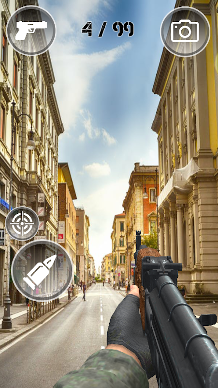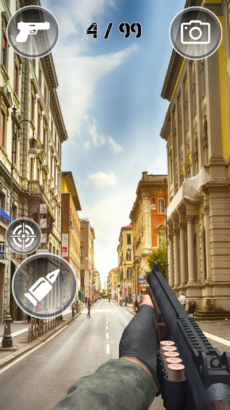 With the help of your mobile camera you will enter a realistic environment, choose a weapon and enjoy the sounds and effects of the shots.