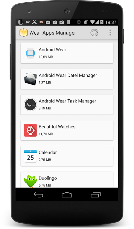 With App Tracker you can easily manage your software on the Android Wear device. See details such as storage size or permissions for your apps. Get an overview about installed apps. Quick uninstall apps with one touch.