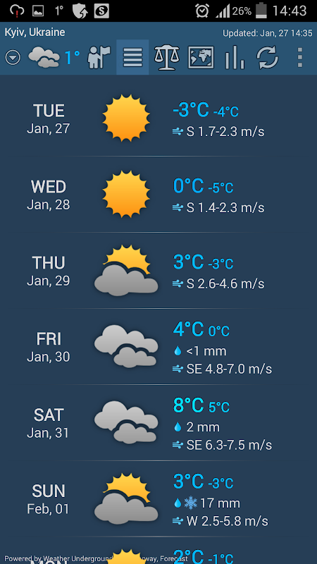 ☆ Contains multiple views for weather information, daily, hourly and extended weather information. Possibility to compare weather information from different weather data sources.