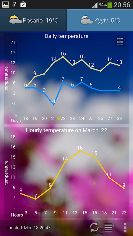 Weather ACE receive weather data from several sources, automatically select the best weather source (based on calculated accuracy of available sources) and it also allows you to compare available weather forecasts from all available weather sources.