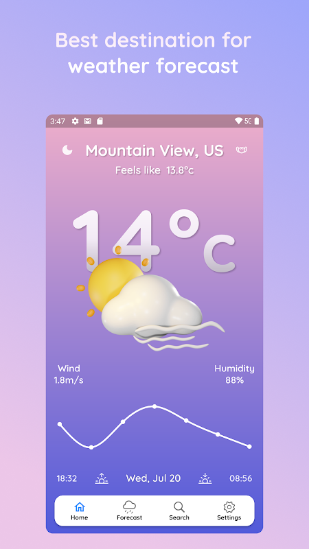 1.Accurate weather information you need including: feels Like, wind speed; wind direction; atmospheric pressure; humidity; UV index and visibility.