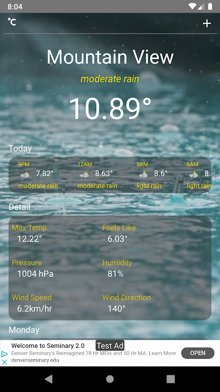 Weather Lite detects weather forecasts in your current location automatically. There are many information in weather forecasts which includes atmospheric pressure, weather condition, relative humidity, wind speed and direction.