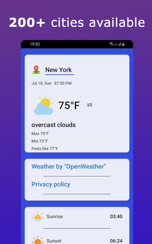 Our app provides fast weather forecast anywhere&anytime! You never leave your 🌂at home!)