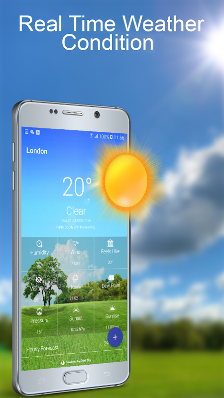 Weather report also provides atmospheric pressure, weather conditions, visibility distance, relative humidity, precipitation in different unites, dew point, wind speed and direction, in addition to ten days in future and hourly Weather Radar: Daily & 7 Days Forecast Update.