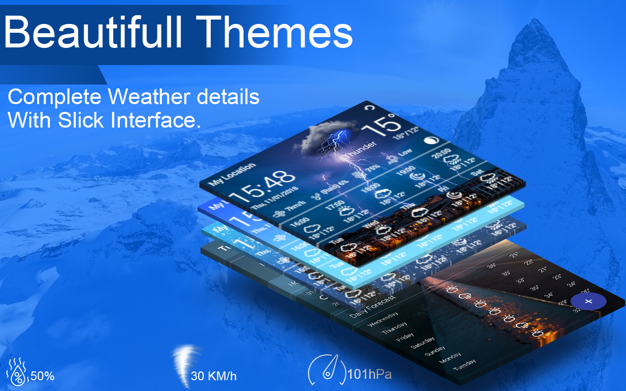 Realtime temperature, humidity, pressure, wind force and wind direction are all in this weather app based.