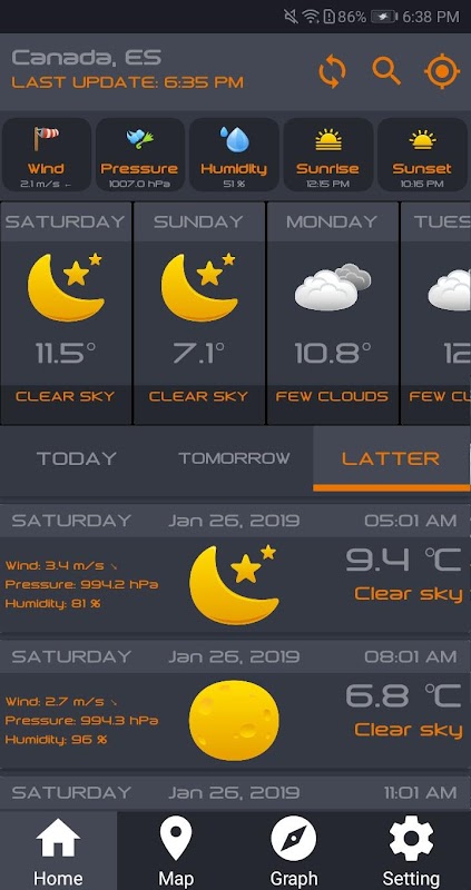☀️ This daily weather app display current temperature, daily and hourly forecasts, sunrise and sunset time, humidity, wind speed and air pressure with weather today & weather tomorrow.