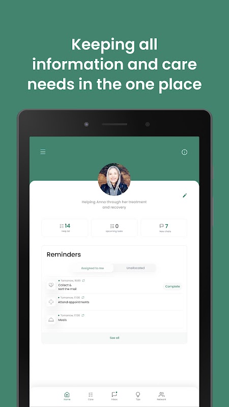 The app can be used to identify support and care needs, coordinate people to provide the care, keep everyone informed, receive messages of love and support, and access caring tips and information.