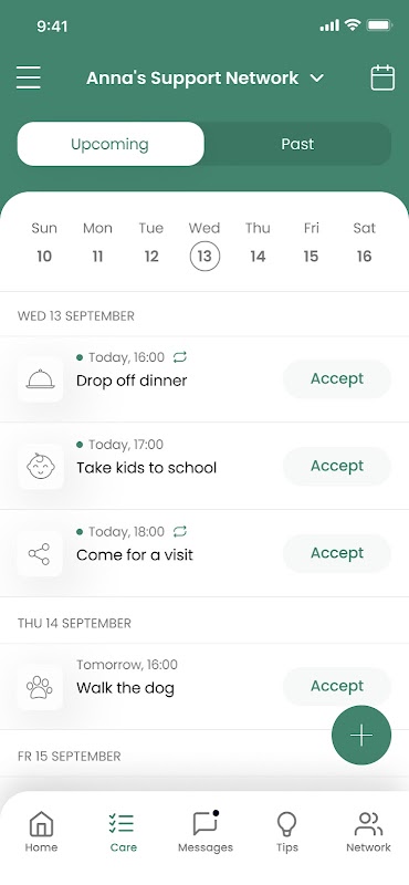 Friends and family who have offered to help can be invited to join the support network via our simple SMS invite or sharable link.