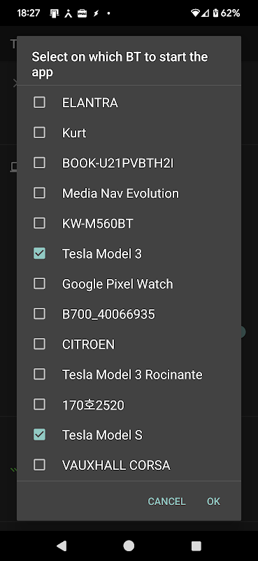 - Um die App zu nutzen, stellen Sie sicher, dass Sie das BT von Tesla aus der Liste der BT-Geräte auswählen,