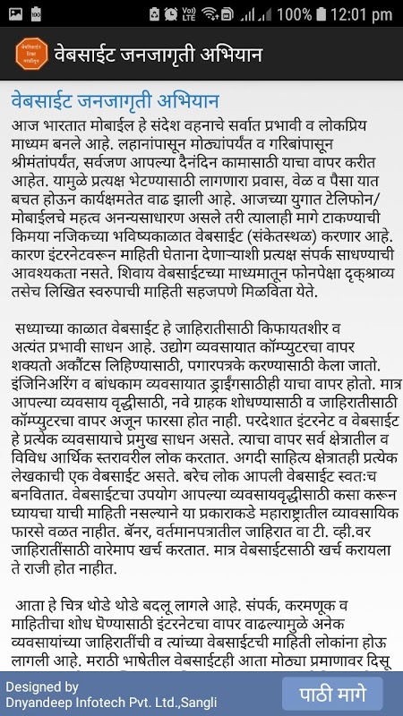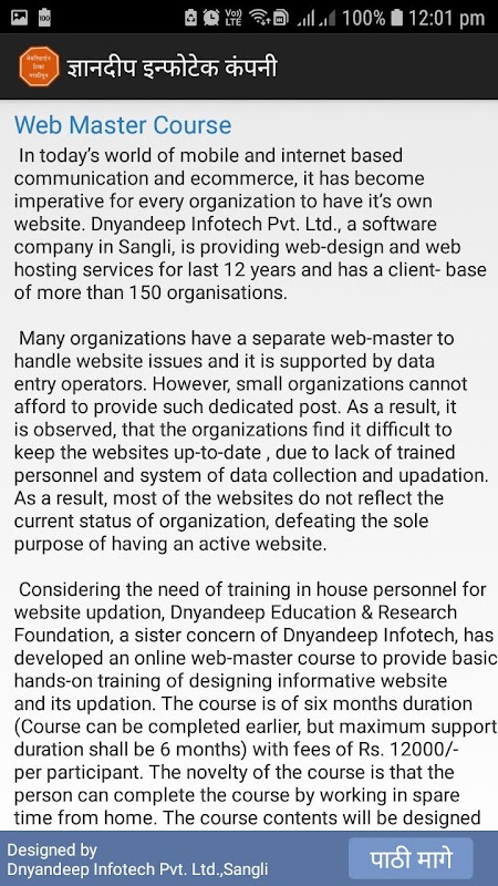 Dnyandeep Infotech Pvt. Ltd. has developed this app to create confidence in web design by providing simple lucid lessons in Marathi for unemployed youth or entrepreneurs to start their own business in this field.
