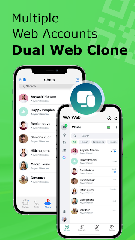 Dual Web Scanner App allows you to open the same account on different devices or log into two WA accounts on a single device. Dual App for WA offers strong connection and avoids unexpected logouts.