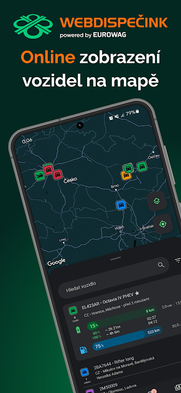 The application provides up-to-date information on the status and location of the vehicle with the possibility of displaying it on a map. Based on the vehicle's movement and GPS coordinates, it automatically records an electronic logbook, including a division into business and private trips. Furthermore, the application provides cost recording - receipts for refuelling, washing or servicing can be very easily entered into the application and then digitally transferred to your accounting software. Finally, the application allows you to leave a message for your fleet manager, dispatcher or other users of the vehicle.