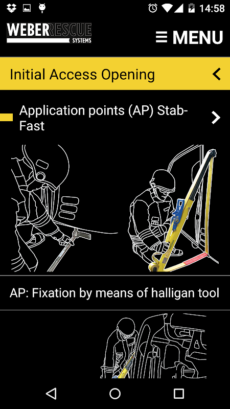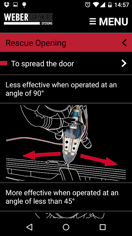 Now you can get the popular tips and tricks from WEBER RESCUE free of charge, as well as a practical app. With it, you have our step-by-step instructions for the optimum use of hydraulic rescue equipment for extrication at the deployment site. The 42 tips available right now are quick to find, split up into the following five categories according to deployment phase:
