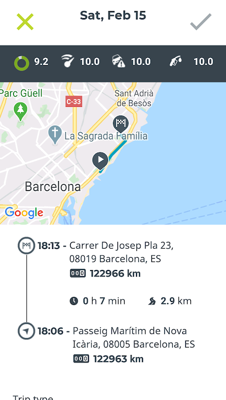 The app allows drivers to add trip details, including trip mode settings (business, commute or private), purpose of the journey, contact person for the job and any other comments directly on their smartphone.