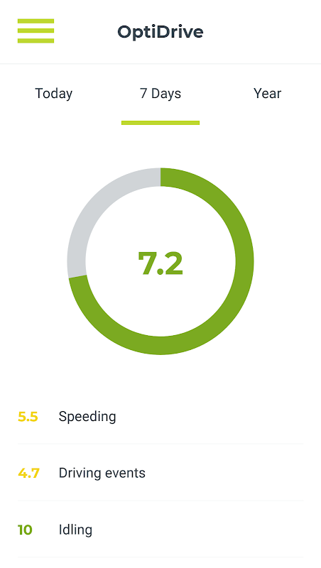 • Delivering direct feedback to help improve driving style and encourage responsible driving through OptiDrive 360 scores by day, week or year.
