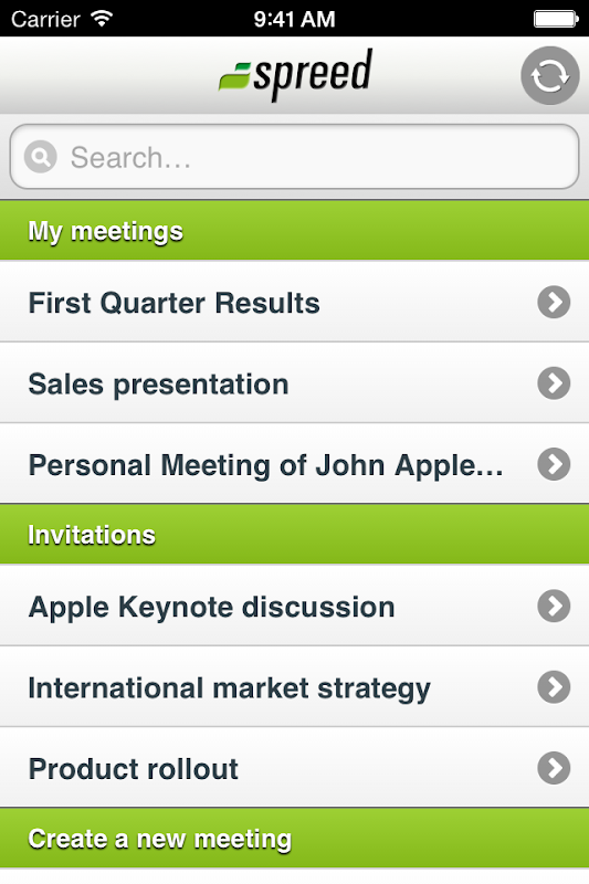 With Webinar you can easily attend Spreed online meetings and telephone conference calls and keep track of meeting invitations.