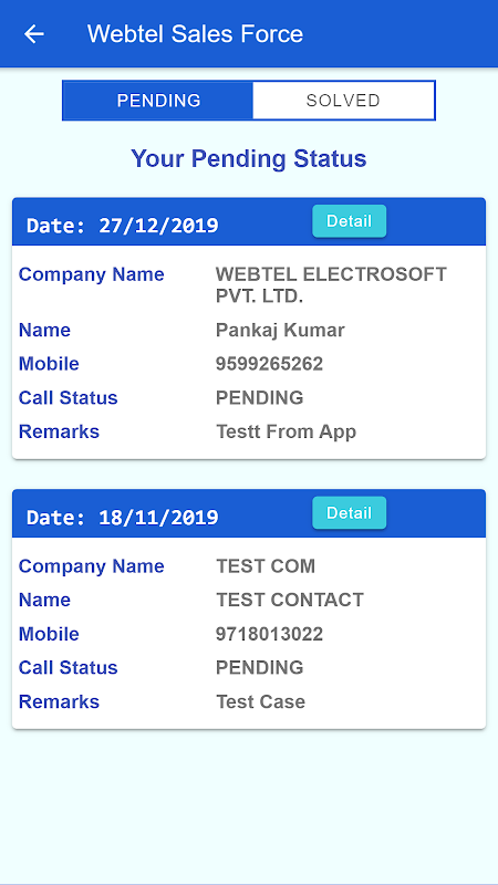 Webtel Sales Force is the utility for the sales executives which helps them to manage their daily work activities.